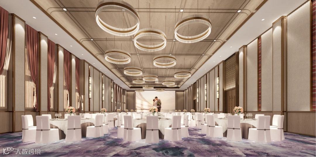 宴会厅考虑同时要兼顾大型婚宴和会议接待,我们整体采用的现代、庄重、轻松的基调。融入小量的在地原色,让宴会空间既呼应了整体的设计理念,又满足不同的运营需求。