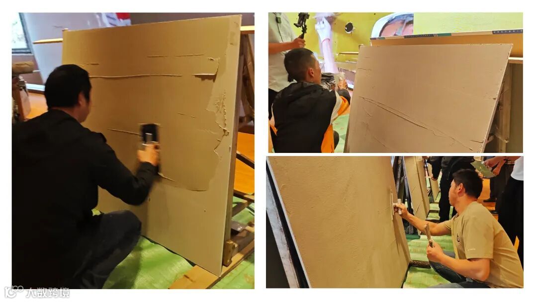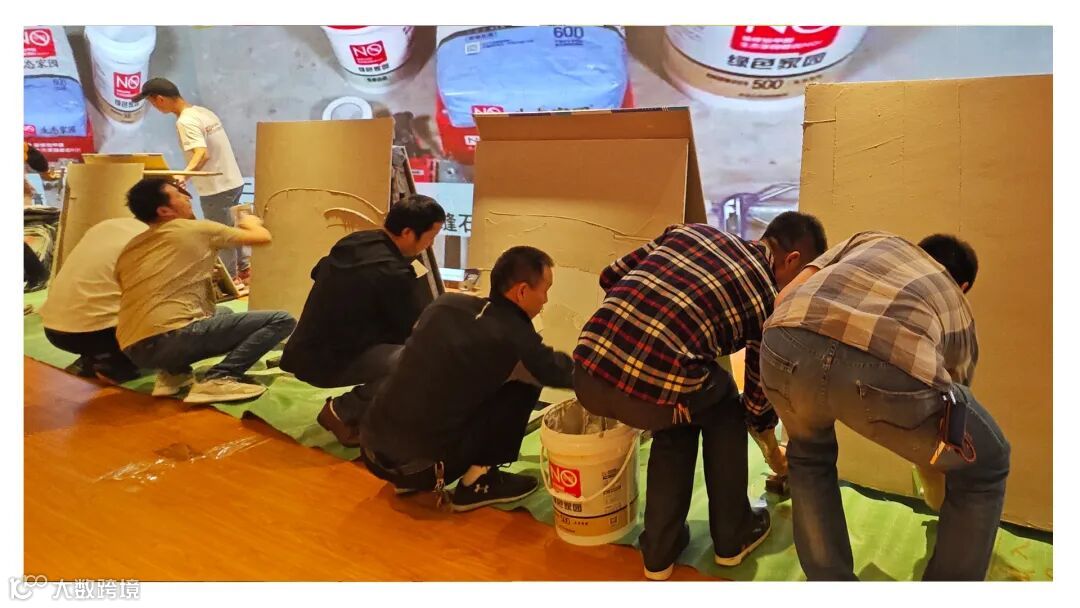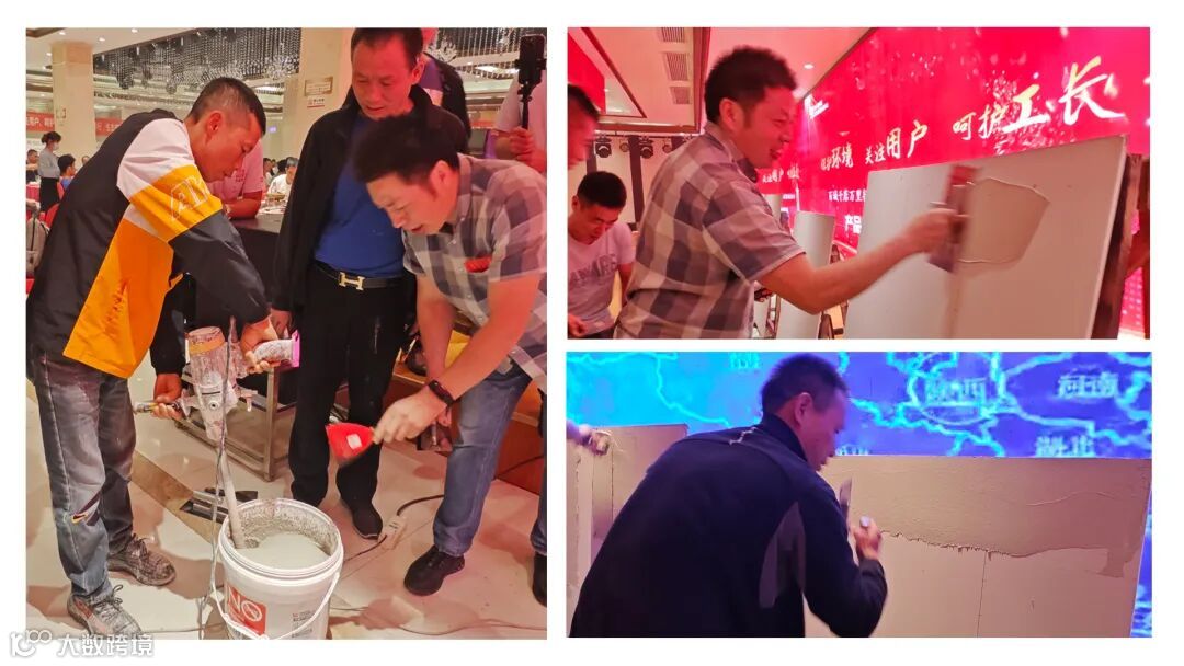 而接下来在生态家园明星产品抗裂星KLX550抗裂轻质石膏的批刮体验中,更是引起了一股热流,现场在座油工师傅们跃跃欲试想要一展身手,几块批刮体验版在师傅们行云流水的一番操作下,披上一层平整顺畅的外衣,师傅们手中的刮刀好比画家手中的画笔,用他们的专业呈现着最完美的画作。