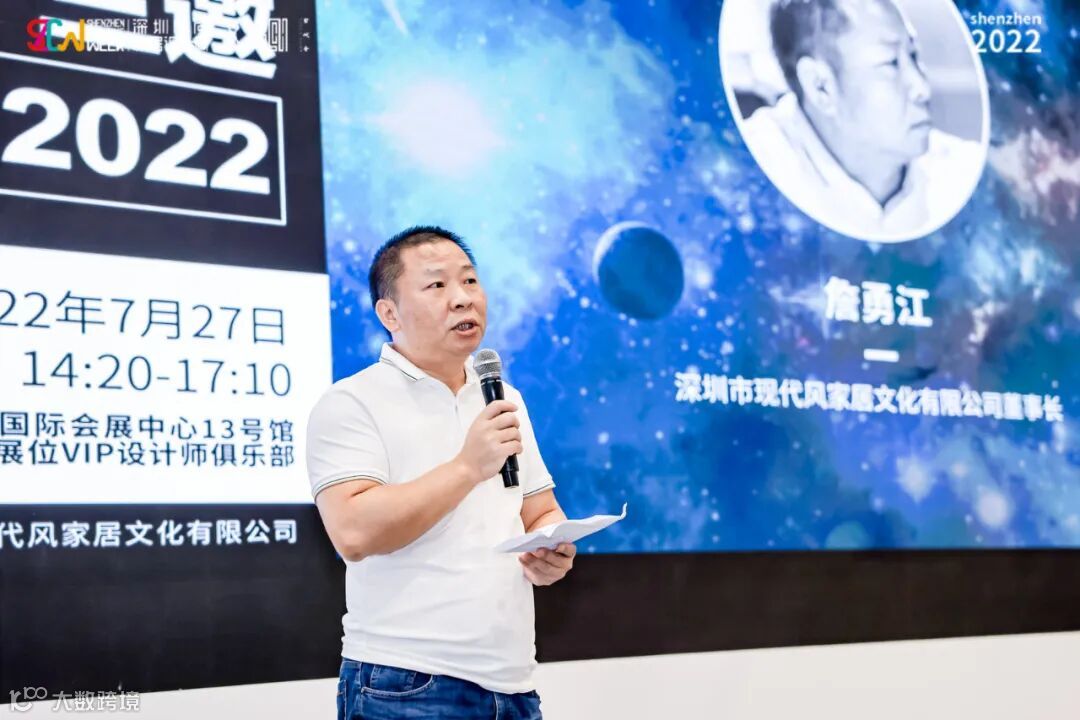 深圳市现代风家居文化有限公司董事长詹勇江在致辞中表示,我们聚焦当下新消费主力群体的多元需求,在产品开发过程中融入他们的美学观和生活观;我们希望以美学的视角,参数化设计,机器人制造,彰显雕塑感的多种材质工艺混搭,为消费者提供具有美学价值的产品。