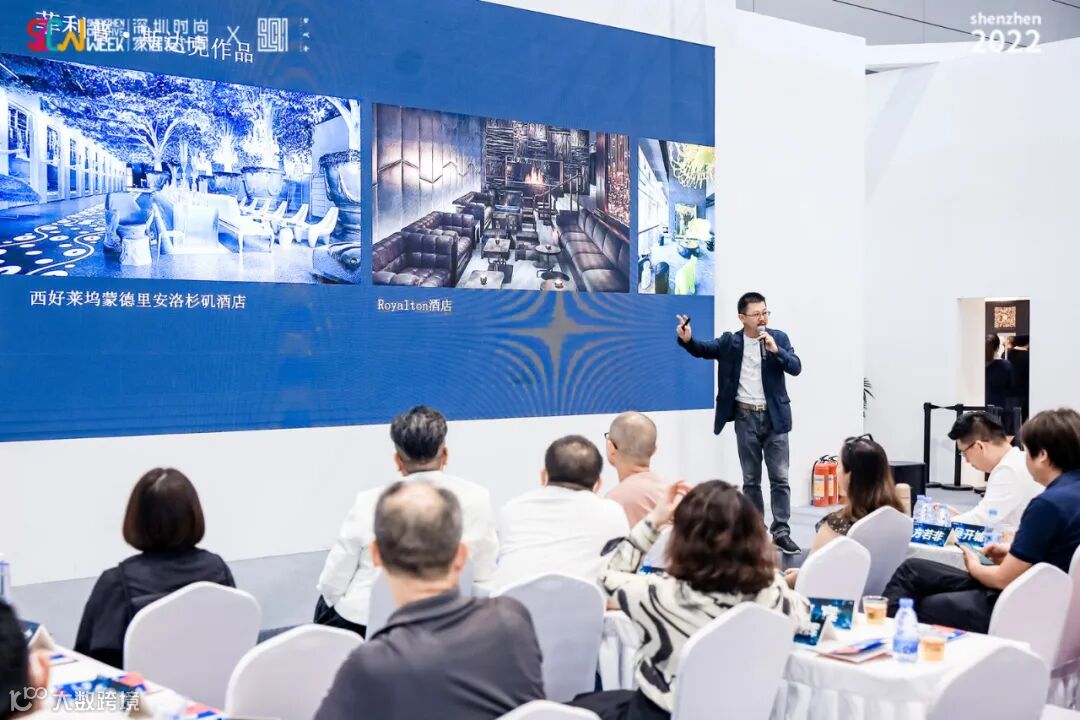 宋爱生在主题演讲中通过展示瑞克国际设计作品,分享了如何通过无界的设计打造新生代酒店旅居生活方式: