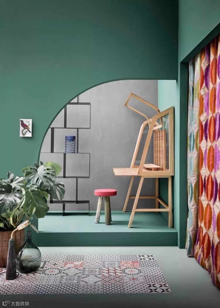 在所有颜色中,绿色是最具生命力的颜色。将绿色融入空间设计,能营造一种前卫摩登的时尚感。