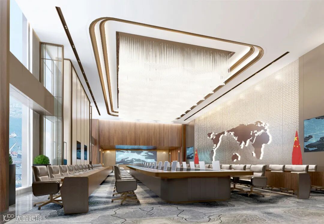 董事长办公室通过对建筑空间的改造,创造两层挑高的办公室空间符合国际化集团董事长办公空间的要求,站在玻璃幕墙可俯瞰着整个前海中心和小南山。