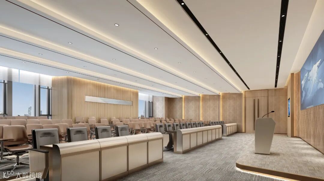 大楼功能设计根据各版块的互动关系为大楼进行垂直规划,创造出多层空间、复合空间和再生空间等多元空间,对不同功能空间赋予平和奢雅、尊贵大气的办公会所空间特质,彰显宝能集团的企业精神和国际形象。