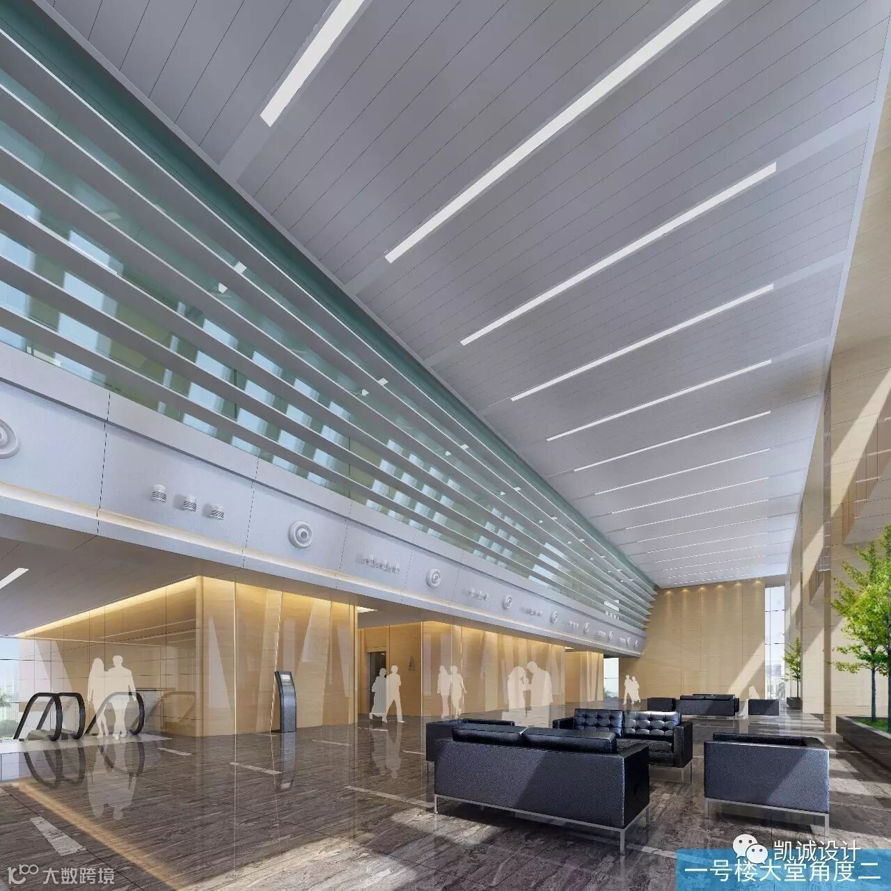 遵循以人为本和可持续发展为原则,设计构思上形象统一,风格统一,手法和形式元素相统一,空间感受具有连贯性,寻求逻辑关系,将造型尺度、比例与造型元素相结合,形成严谨有序的美学,设计上根据其特有的企业特性和特点,利用原建筑体块自然形成空间格局,以山体为引线,材质上选择以金属板、铝板、大理石为主,着重体现空间的体量感、厚重感,墙面大面积采用折面石材,造型简洁不失大气,天花采用超质感铝板和LED发光灯片,排列有序,干净简洁,简练的造型手法勾画出企业形象,突出厚重的企业内涵与时代精神。