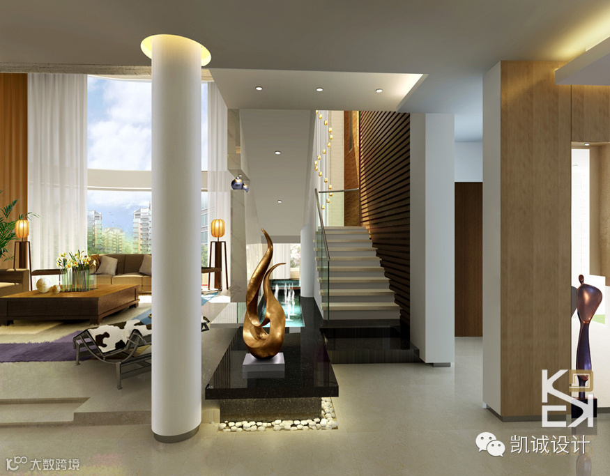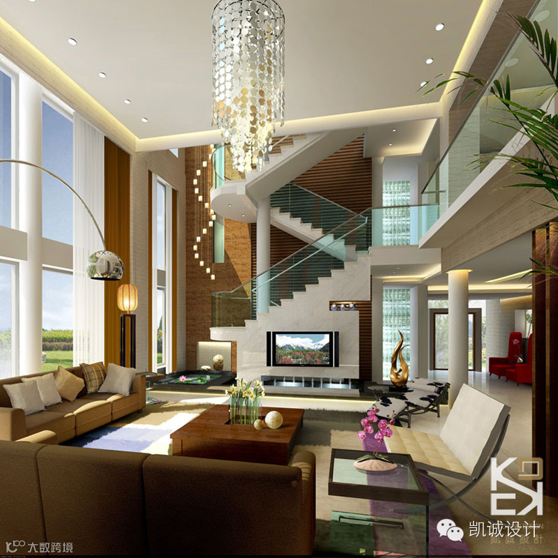 设计中融入大自然的、生态景观的、中国传统文化的、古旧的、以及现代的、时尚和空间构成的。空间的处理以及设计概念基于结构构成手法和线面的组合,将室内外自然、通透的理念贯穿于整个设计之中。别墅设计的重点于在功能、空间与风格上的把握。由于别墅面积较大,很多人认为功能应该不是问题,这其实是一个误区。由于建筑设计的局限性,经常会造成别墅空间面积的利用率不均等,使用频繁的空间有时候面积会局促,而有些很少有人涉及的空间倒反而留了很大的面积。这时候,需要在室内设计的过程中做必要的调整,以合理的功能安排和布局,满足业主对于生活功能的要求。