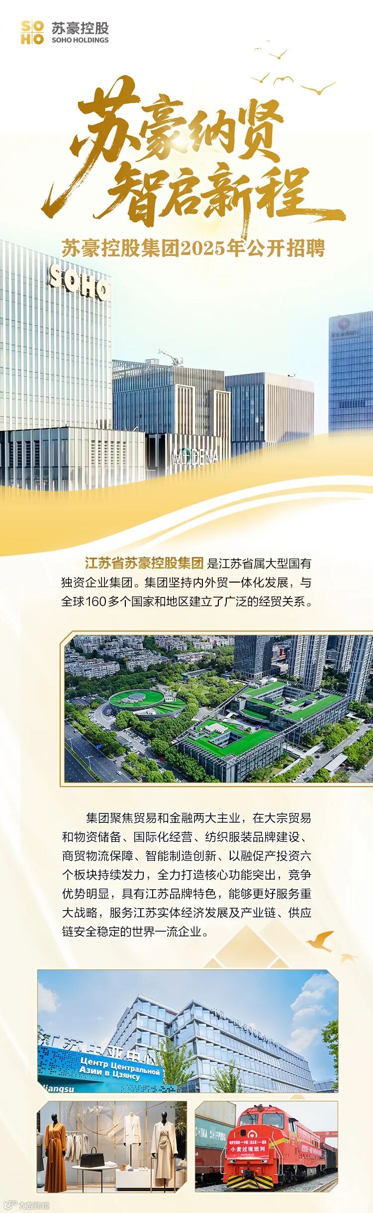 【江苏招聘】江苏苏豪控股集团2025年公开招聘公告