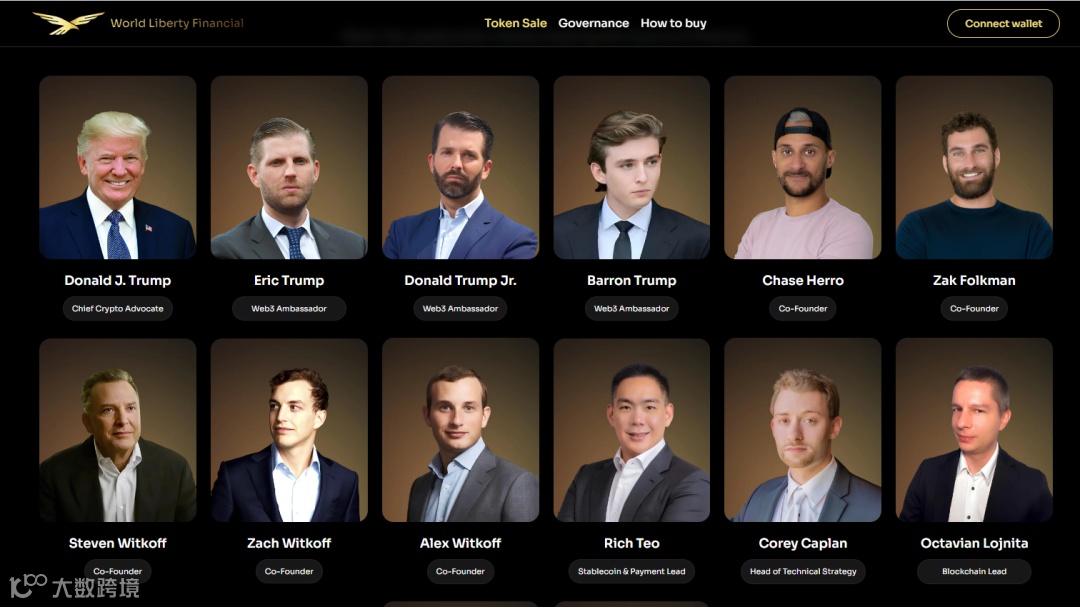 特朗普本人被列为World Liberty Financial的“首席加密倡导者”,他的三个儿子——Eric Trump、Donald Trump Jr. 和 Barron Trump 也在该项目中担任了不同角色,分别作为“Web3大使”和“DeFi愿景者”,可以看出整个特朗普家族对该项目的深度参与。