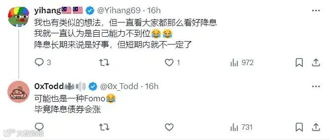 但市场上也有人提出了不一样的观点,认为降息带来的短暂效果或许并不利于加密资产的短期投资。