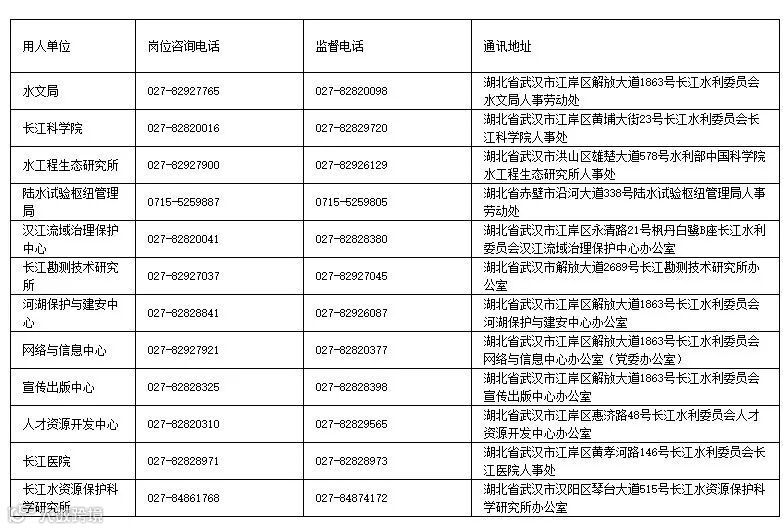 本公告中有关政策由长江水利委员会人事局负责解释,《计划表》中所列内容由用人单位负责解释。