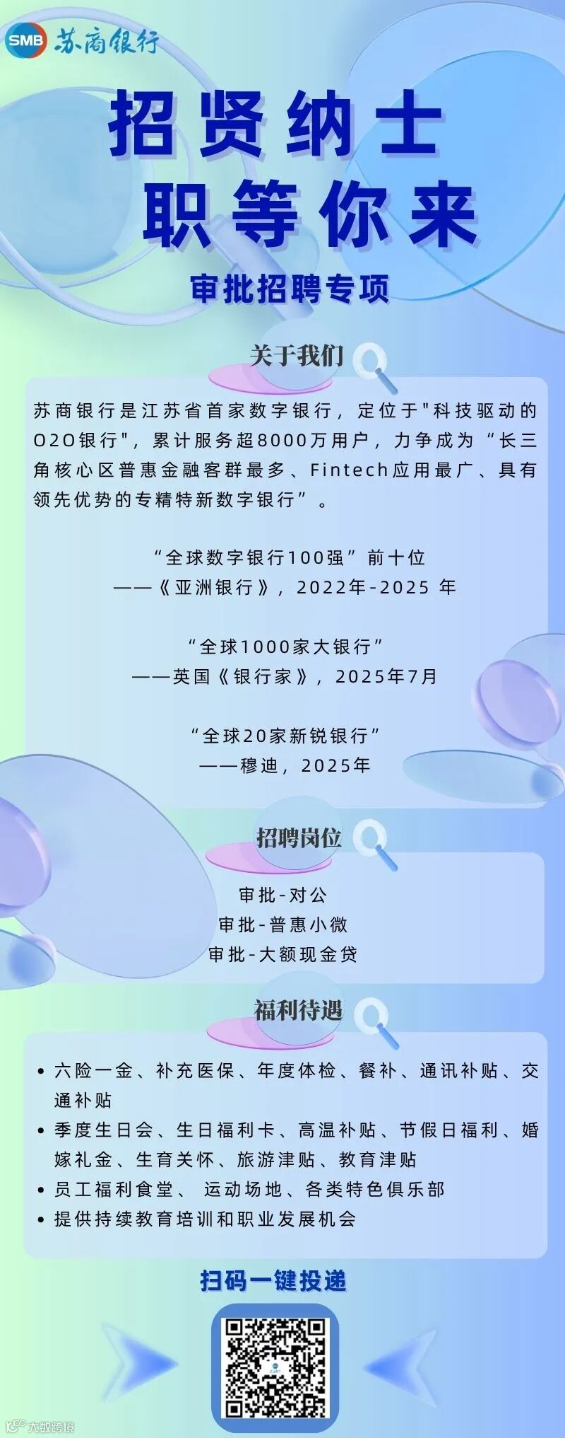 【江苏招聘】江苏苏商银行股份有限公司招聘公告