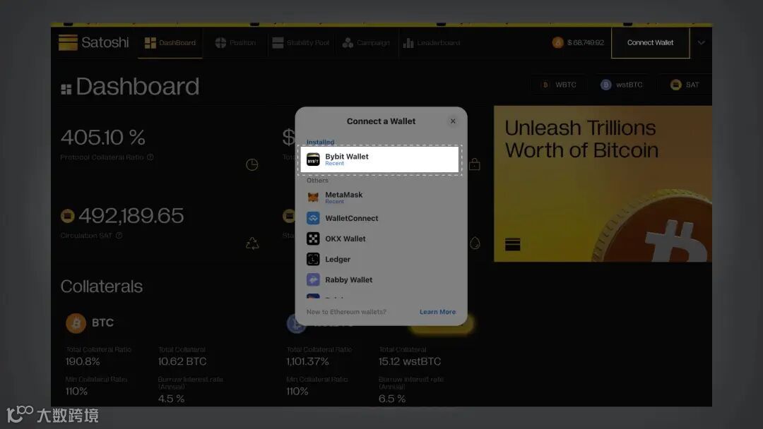 第一步:前往 Satoshi Protocol 官网并连接 Bybit Wallet