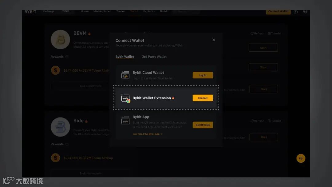 第一步:连接 Bitcoin 钱包,连接 BEVM 钱包并选择 Bybit Wallet