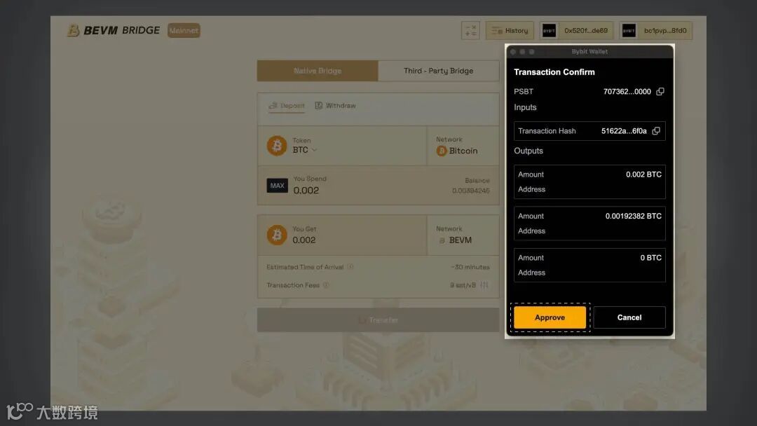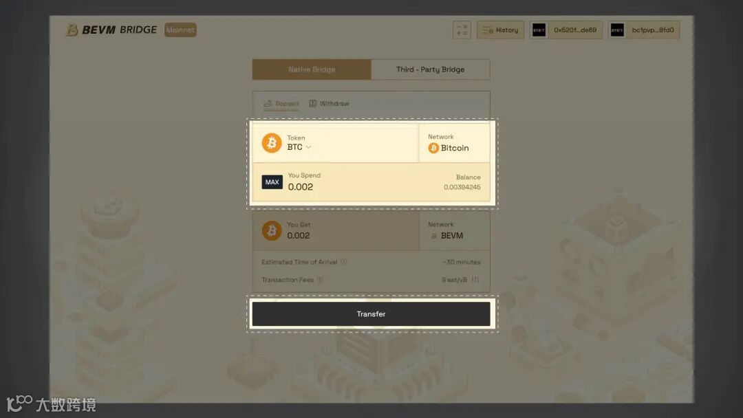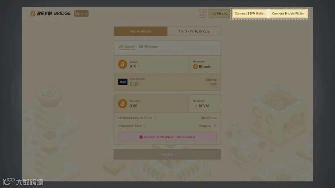 前往 BEVM 官方桥,将 BTC 跨链至 BEVM 主网