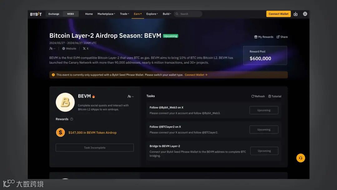 活动链接: Bitcoin Layer-2 Airdrop Season: BEVM | Bybit