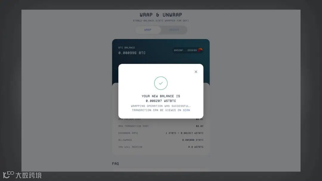 第二步:输入跨链的 BTC 数量,点击 Transfer,跨链成功(预计等待时间约为 20 分钟)