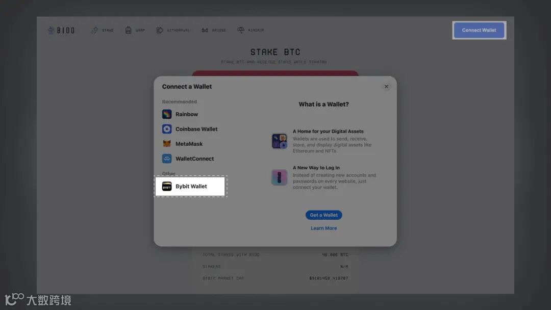 第一步:前往 Bido 官网 https://app.bido.finance/ 并连接 Bybit Wallet