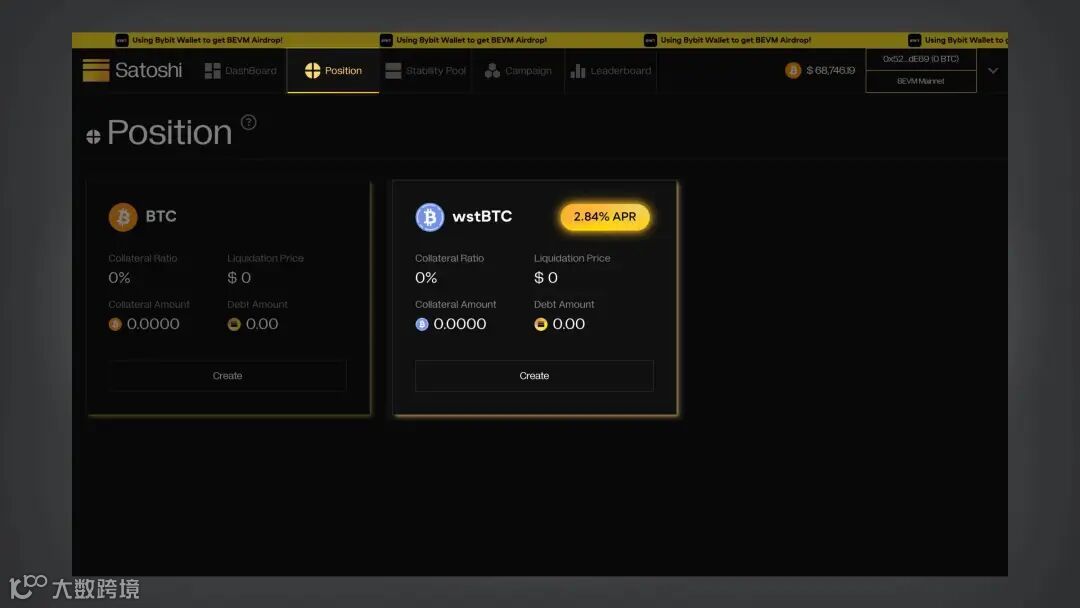 第二步:在导航栏前往 Position → 选择 wstBTC → 点击 Create
