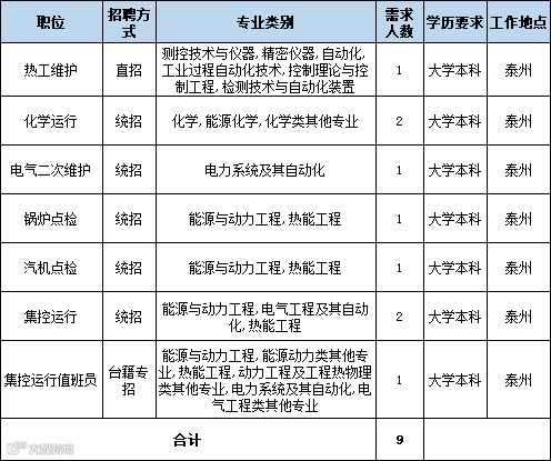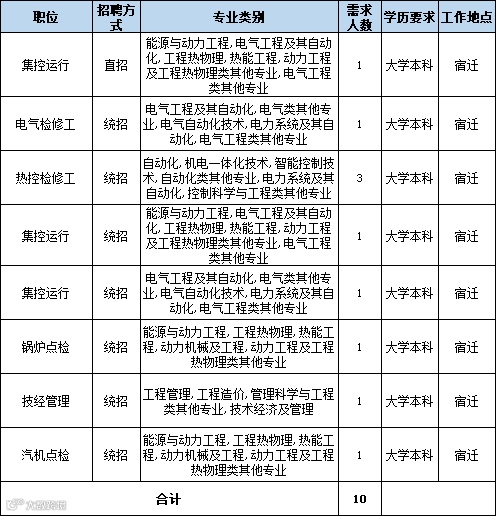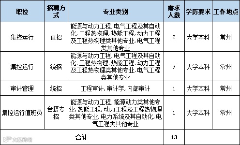 本次招聘涉及江苏公司10家所属单位,计划招录集控运行、热工检修、电气检修、锅炉点检、机务检修、汽机点检、电厂化验员、化学运行、技经管理、网络及信息维护、电力交易员、市场交易员、法务管理、审计管理、出纳、财务管理等岗位,共招录64人,各单位简介及招聘计划如下: