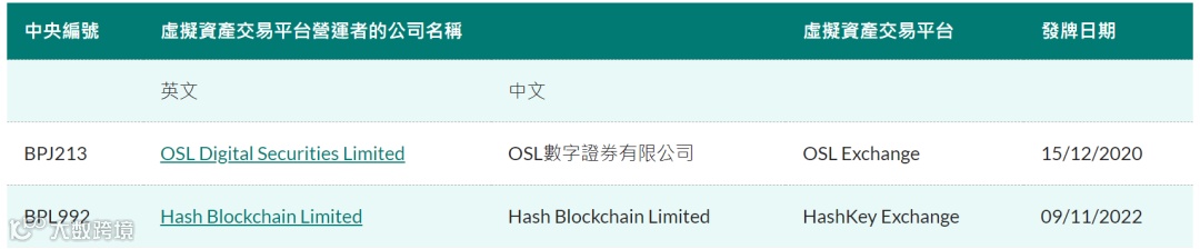 目前在香港有牌照的交易所有两家Hashkey、OSL。