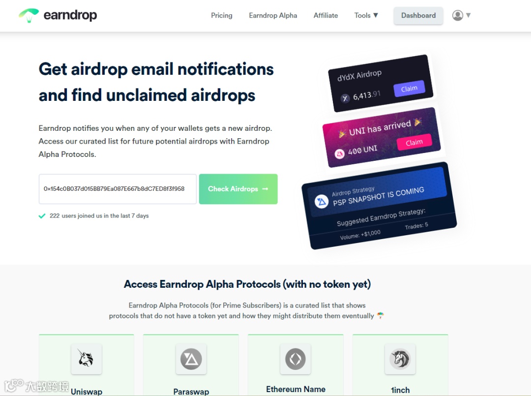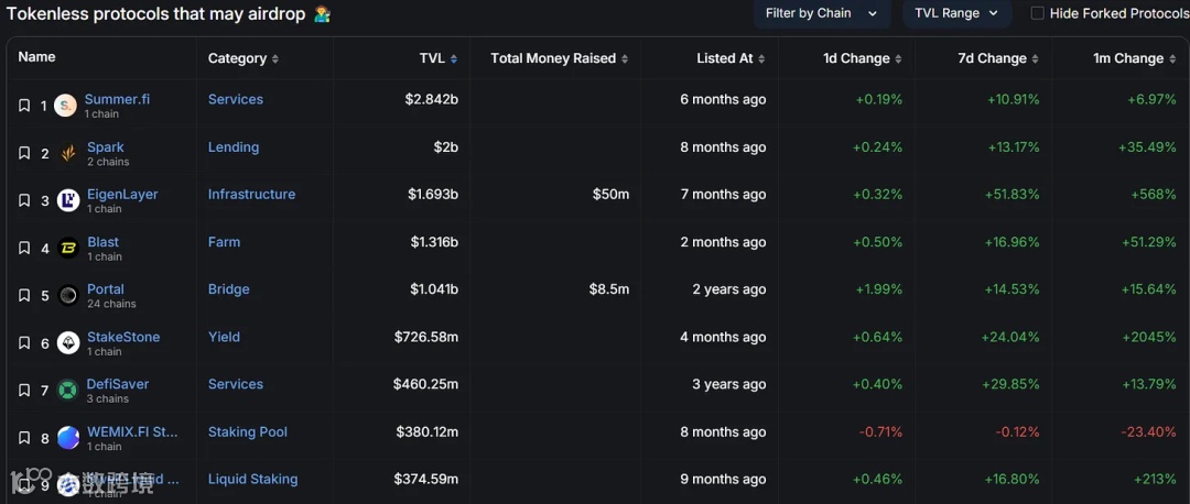 DeFillama提供了一个非常有用的免费空投仪表板。