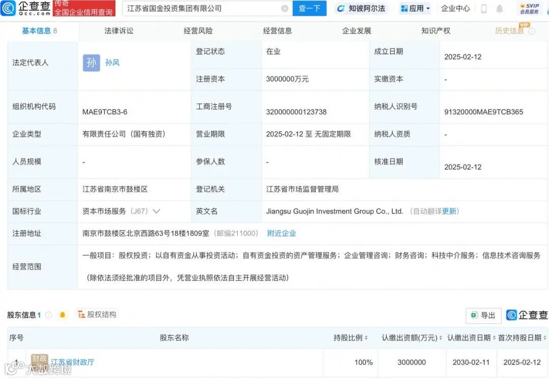 、企业管理咨询、财务咨询等。股东信息显示,该公司由江苏省财政厅全资持股。