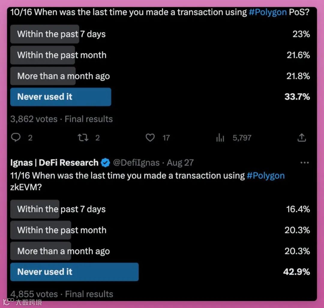总之社区的活跃度是一个积极的信号,但实际的应用情况可能受到多种因素的影响,而且这次的调查只面向X(twitter)平台,可能收集的样本还不够大,在解读调查结果时还是需要综合考虑。