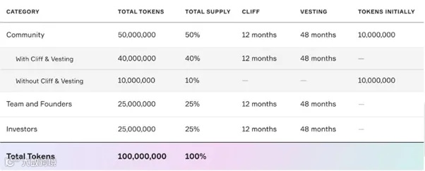 ASX 是 Asymetrix 的治理和实用代币。总供应量为 1 亿代币,其中 50%分配给社区,25%分配给投资者,25%分配给核心贡献者。团队预留了社区的 50%中的 10%用于激励早期协议用户。