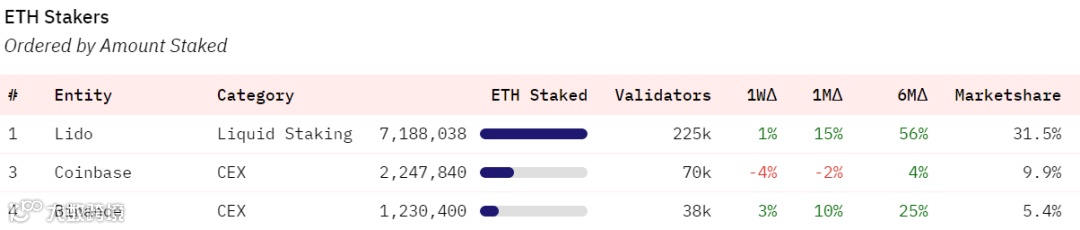 还真有关系!Binance 和 Coinbase也提供有质押服务,分别占据市场的9.9%和5.4%,说白了与Lido之间是竞争关系,这它俩一出事可不Lido获益嘛,据悉Lido本月存款增加了近 90 万以太币 (14.3%)。