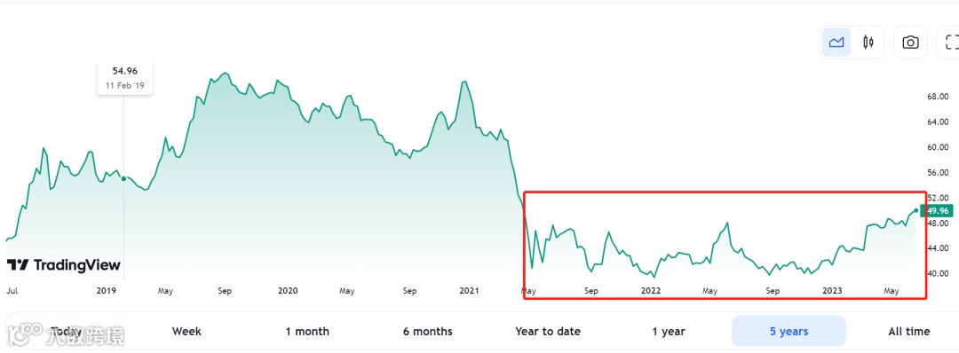 6月20日,TradingView数据显示,目前BTC市值的市场份额为49.96%,接近50%,创2021年5月以来新高。