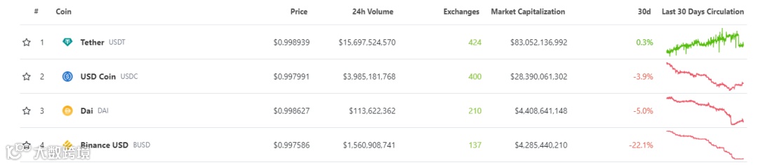 6月16日,Coingecko数据显示,目前稳定币BUSD市值已跌至43.4万亿美元,较年初的165.7亿美元下降近74%,现DAI已成为仅次于USDC的第三大稳定币。