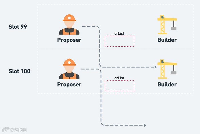 PBS指的是将原本负责打包交易的角色分成两个部分,分别交由提案者和打包者负责。在打包交易阶段,区块交易将由提案者负责,并生成交易名单,随后交由打包者竞价打包操作。