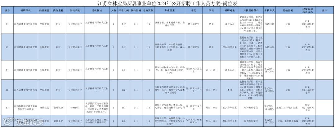 江苏省林业局所属事业单位2024年公开招聘工作人员方案岗位信息表
