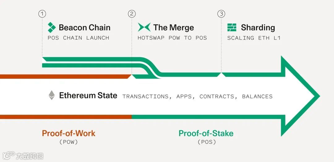 以太坊合并无疑是下半年各方视线聚焦的事件。9月15日,在多年推迟和3次演练之后,以太坊终于正式进入合并,原有采用POS权益证明机制的信标链与采用POW工作量证明机制的以太坊主网成功合并,这也意味着这条全球体量最大的智能合约链成功转为POS链。用户只需要通过质押即可实现原有的挖矿,而无需借助矿机。
