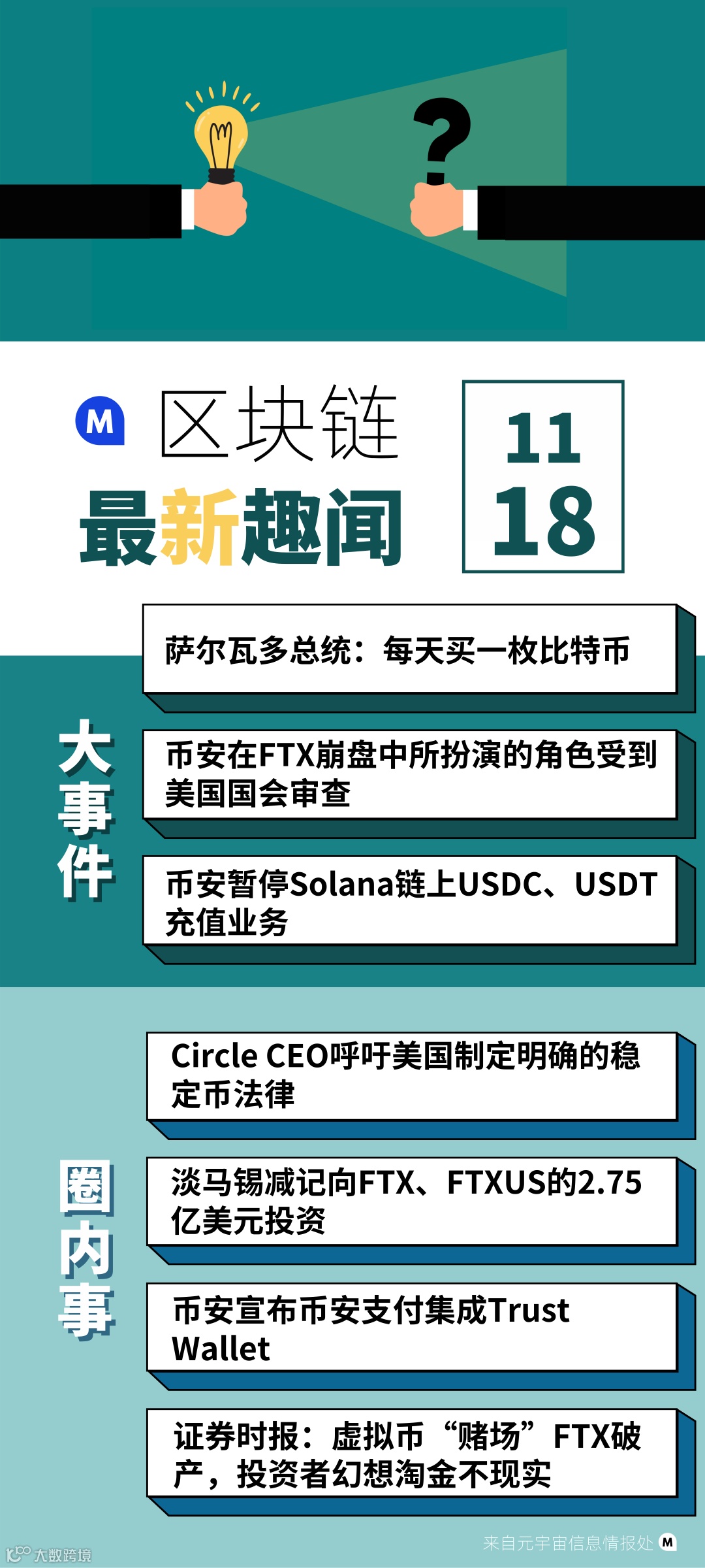 11月17日,证券时报发文《虚拟币“赌场”FTX破产,投资者幻想淘金不现实》。文章表示,估值曾达300多亿美元、全球排名前三的加密货币交易所FTX破产和今年以来的加密熊市给市场留下了诸多警示:一是全球范围内对虚拟货币监管的接受程度将大大提高;二是加密资产是金融机构投资组合必需品的观念瓦解;三是机构神话的破灭强烈提醒普通投资者更加清醒地看待虚拟币的性质及其风险。