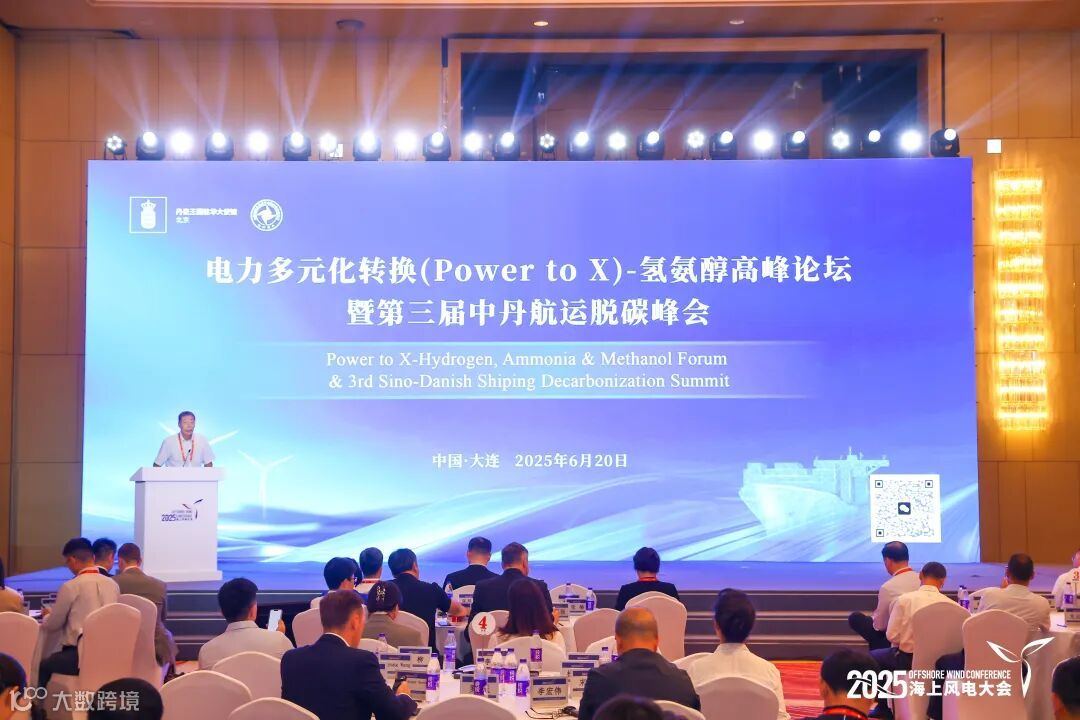 通过制备氢氨醇,不仅可有效消纳海上风电,更对传统工业企业提升自身绿色竞争力意义重大。为此,2025海上风电大会隆重举办了“电力多元化转换(Power to X)-氢氨醇高峰论坛”。丹麦驻华使馆、国家主管部门、辽宁省发展和改革委、中国可再生能源学会风能专业委员会、世界银行、世界资源研究所可持续转型中心的主要领导为论坛致辞。大连海事大学与国际航运公会的2位专家分别进行了题目为《国际海事组织(IMO)净零框架》《清洁能源海洋枢纽和低碳基础设施》的主旨演讲。