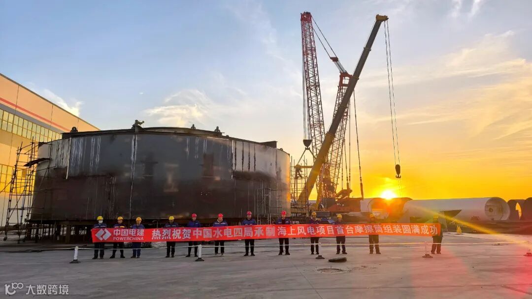 “钢铁风火轮”摩擦筒直径24米、高8.3米、重350吨,是海上风电机组基础的一种结构装备,起到对海上风电机组辅助支撑作用。