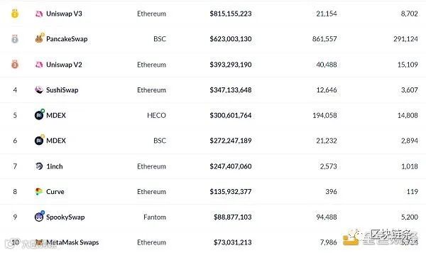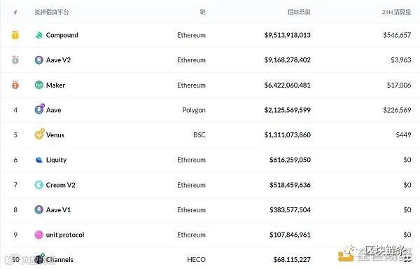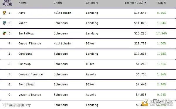 DeFi排名前十锁仓量 数据来源:DeFi Pluse