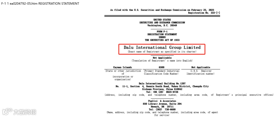 2025年2月25日,成都物业管理服务公司大陆国际集团(Dalu International Group,简称“大陆国际”)向美国证券交易委员会(SEC)递交了招股说明书,拟以股票代码“DLHZ”申请在纳斯达克上市。