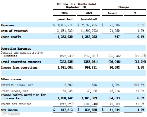 招股书显示,截至2024年9月30日,该公司营收为284万美元,上年同期为276万美元,相应的净利润分别为88万美元、84万美元。