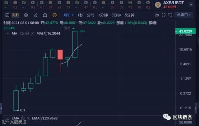 与此同时,游戏的AXS代币的价值已经从1月1日的0.59美元上升到7月底的52美元以上的历史高点,涨幅超过了8700%。目前,CoinGecko的价格略高于43美元。