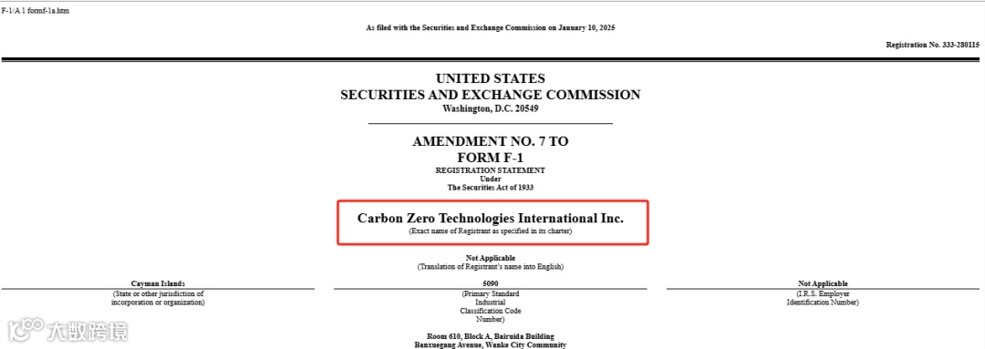 2025年1月10日,来自深圳的回收产业链互联网平台Carbon Zero Technologies International Inc.(以下简称“爱博绿”)向美国证券交易委员会(SEC)递交招股说明书,拟股票代码为“CZTI”申请在美国纳斯达克IPO上市。披露显示,该公司最早于2023年11月16日向SEC递交秘密申请。