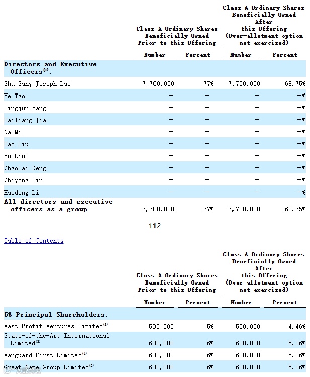 Dejun Yu,通过Vast Profit Ventures Limited,持有5%的股权;