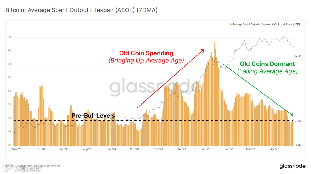 ASOL表示所有花费的UTXO的平均年龄(即每笔交易的平均年龄);