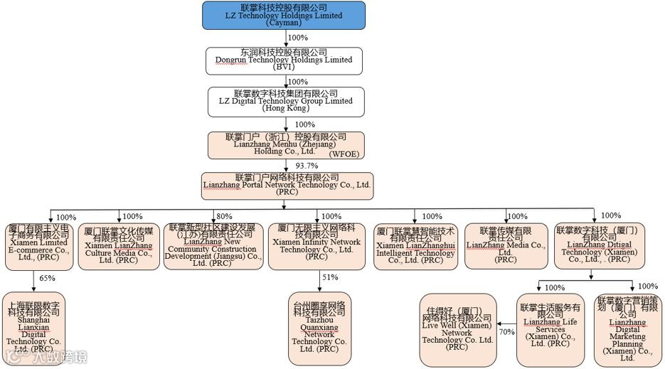 招股书显示,联掌门户的公司架构如下: