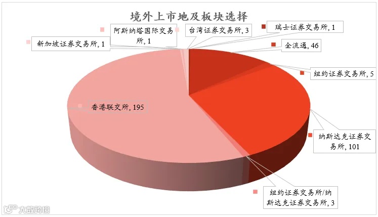 在提交备案申请的355家企业中,有195家企业计划在香港联合交易所上市,46家企业申请全流通。此外,109家企业计划在其他交易所上市,具体分布如下:101家企业计划在纳斯达克证券交易所上市,5家企业计划在纽约证券交易所上市,3家企业计划同时在纳斯达克证券交易所或纽约证券交易所上市。还有1家企业计划发行全球存托凭证(GDR)并在瑞士证券交易所上市,1家企业计划在新加坡证券交易所上市,3家企业计划在其他证券交易所上市,以及1家企业计划在阿斯塔纳国际交易所上市。总体来看,这些企业主要关注港股和美股市场,尤其是港股市场更为突出。