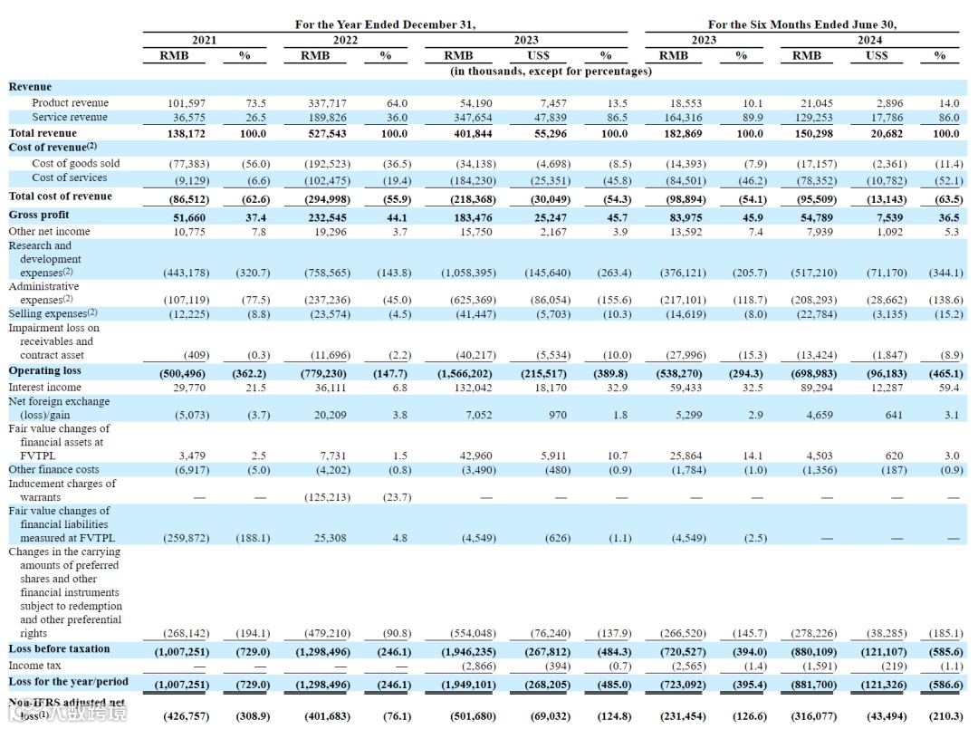 文远知行在2024年上半年营收为1.5亿元(约2068万美元),上年同期营收为1.83亿元;毛利为5479万元,上年同期的毛利为8397万元。