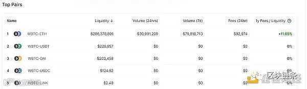 上图:Uniswap上的WBTC流动性(资料来源:Uniswap Info)