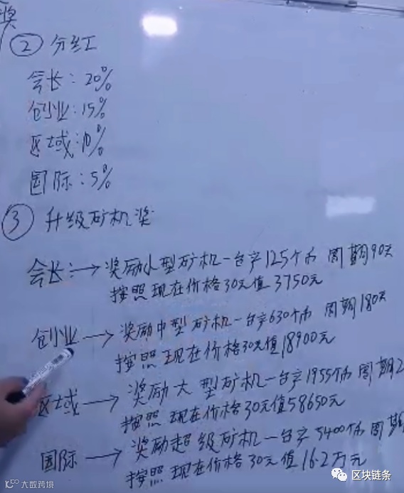 据他们说“这是云矿机。云矿机你懂吗?和比特币不一样,比特币耗电的,我们没有实体矿机,绿色环保。”其实所谓的云矿机,不过是一团空气——但是你需要提高收益,就必须拿钱买更高级别的矿机,你可以买币投资矿机,这就是传销币长久的套路2、鸡生蛋,蛋在生鸡,赚“大钱”!感觉能挣到大钱你会轻易退出?而且操盘手制造严格退出条件,和高额的手续费,更黑的是直接封号,清空资产,然后你在申诉很长一段时间。怎么可能让你轻易退出。