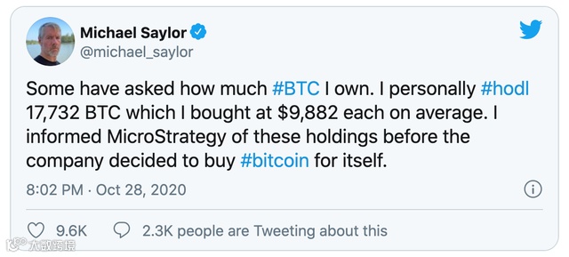 在公司购买比特币之前,该公司CEO早就以个人资产投资了比特币。这位CEO表示,他个人拥有17732个比特币,平均持有成本为9882美元/比特币。