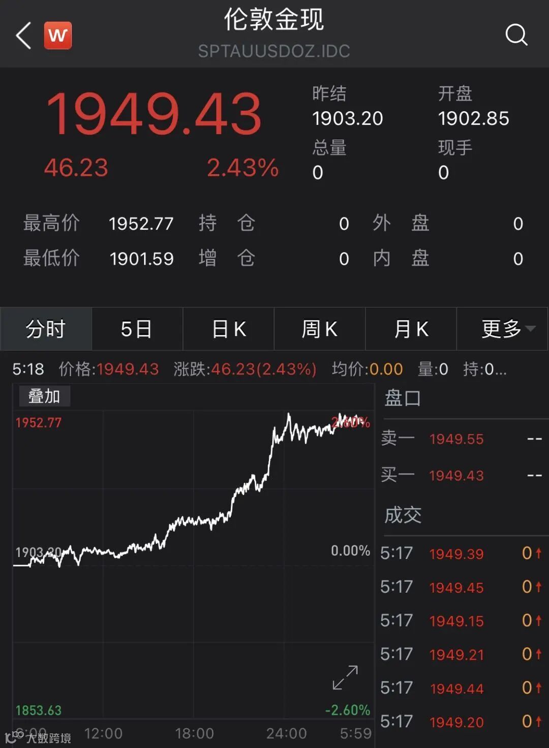 黄金现货也一度突破1950美元/盎司。